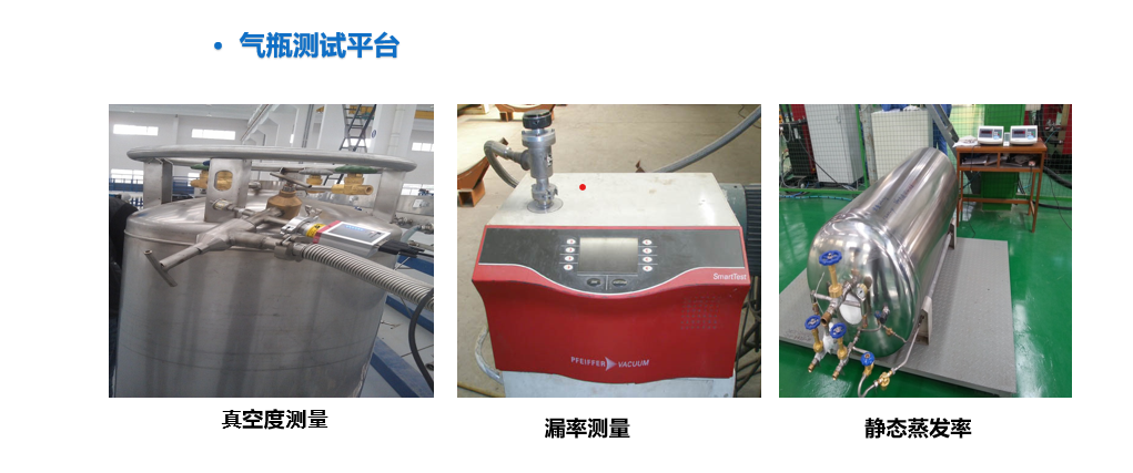 可進行真空度測試、漏率測量、靜態蒸發率、真空絕熱低溫管及管件漏熱量測量、材料熱導率測試及設備的低溫型式試驗