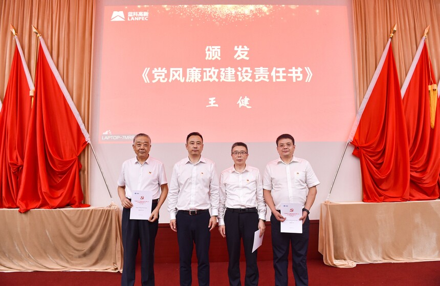 王健為基層黨支部書記頒發《黨風廉政建設責任書》。