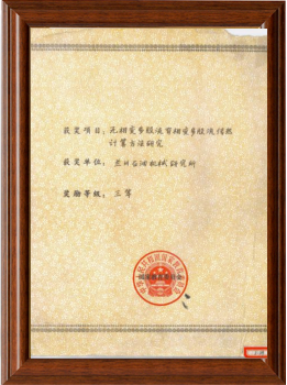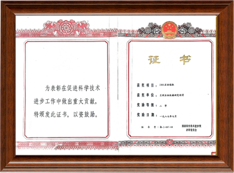 國家經委石油設備優秀科技成果獎一等獎