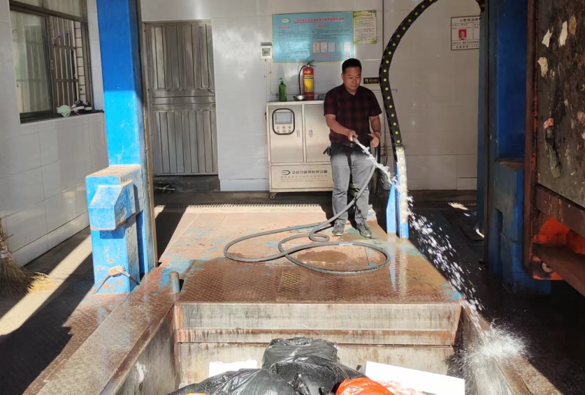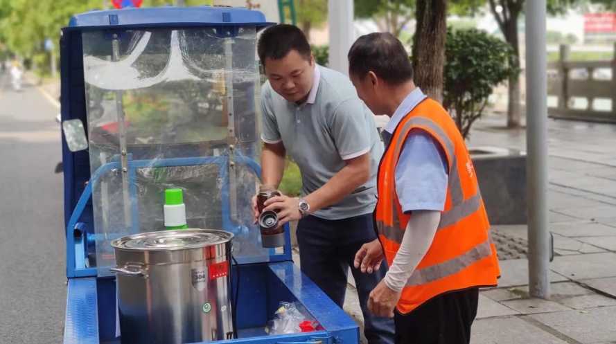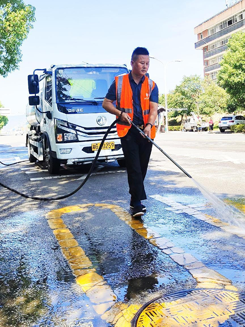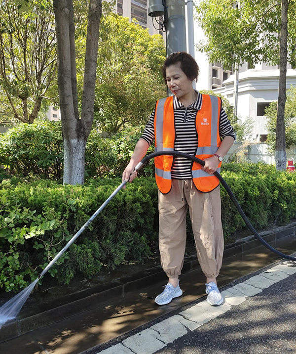 項目經理羅燕妮和副經理歐明星,每天帶領團隊對項目所轄區域進行徹底整理整治,對街道、人行道的衛生死角,暴露垃圾、建筑渣土、街道兩旁可視范圍內有礙觀瞻的廢舊物品、公交站臺的護欄、座椅和電子站牌,地下通道等城市公共設施進行全面的沖洗、擦拭、清掃。
